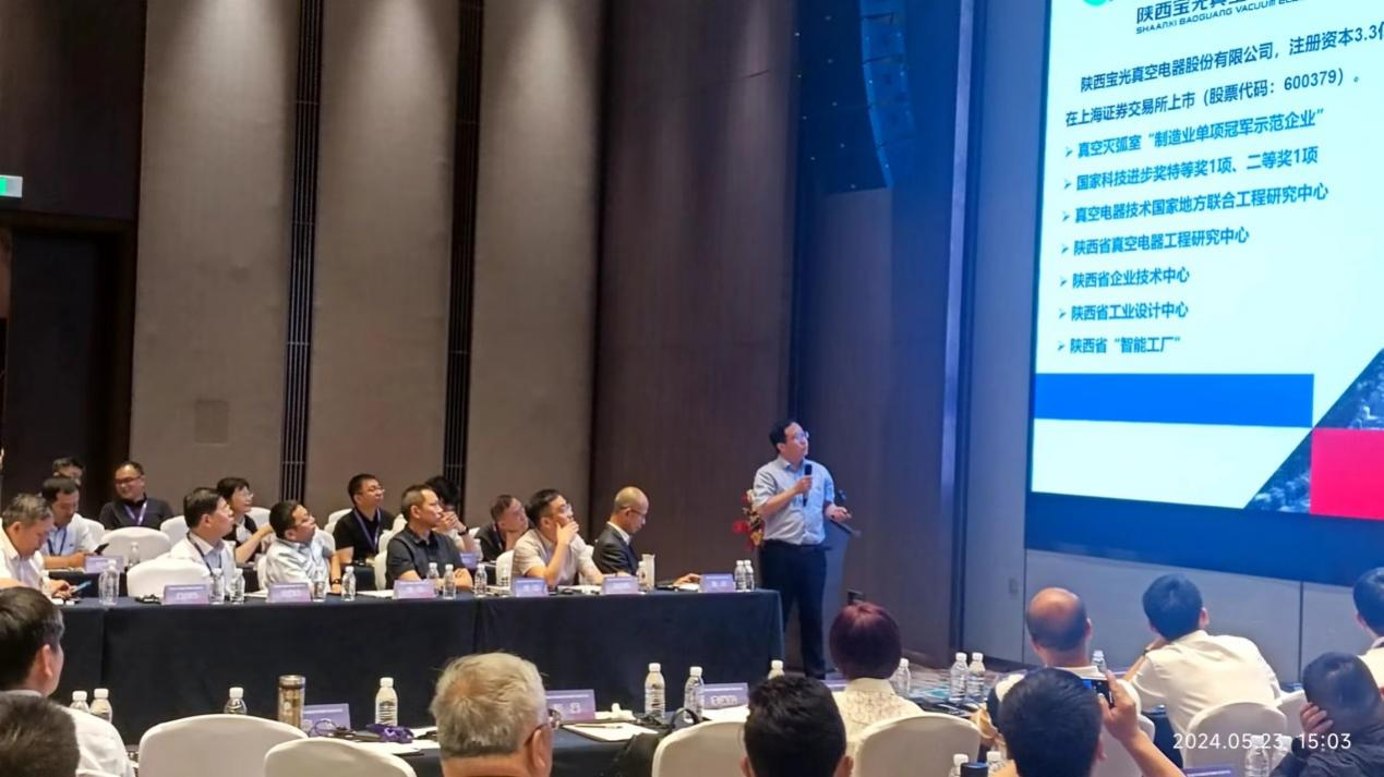 寶光股份做為蟬聯中國制造業單項冠軍企業、真空器件行業的旗艦,黨委副書記、總經理劉壯一行應邀參加論壇,副總工程師、技術中心主任李鵬代表寶光股份做了“高電壓真空滅弧室的研發與應用”的主旨報告,向與會行業專家、相關企業展示了公司近年在高電壓真空滅弧室研發上新的研究成果,進一步堅定 “真空+環保氣體絕緣”解決方案在高電壓等級場合應用的信心,得到與會專家、學者及相關企業負責人的一致肯定。