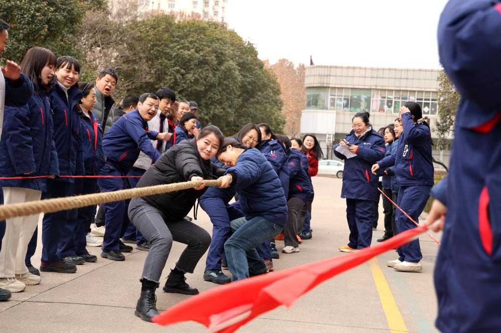 力拔千鈞展豪情,繩牽眾志啟新程。此次拔河比賽分為男子組和女子組。比賽現(xiàn)場,各個隊伍都嚴(yán)陣以待,摩拳擦掌,躍躍欲試,眼神中透露出堅定的決心和志在必得的信念。隨著裁判的一聲哨響,比賽正式拉開帷幕。剎那間,雙方隊員爆發(fā)出驚人的力量,雙手緊緊拽住繩子,身體拼命后仰,迸發(fā)出無盡能量。繩子中間的紅色標(biāo)記在兩隊之間來回移動,每一次小小的偏移都牽動著場內(nèi)外的心。場外啦啦隊和觀眾扯著嗓子喊著號子為自己的隊員加油助威,加油聲、吶喊聲、歡笑聲此起彼伏,熱鬧非凡。