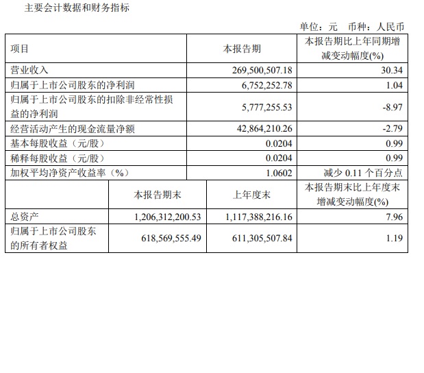 寶光股份2022年一季度主要財(cái)務(wù)指標(biāo)