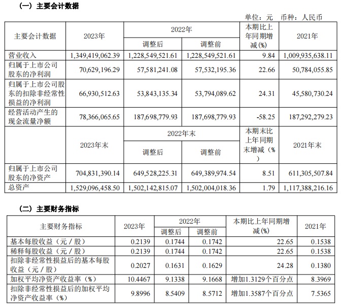 寶光股份2023年度主要財務指標
