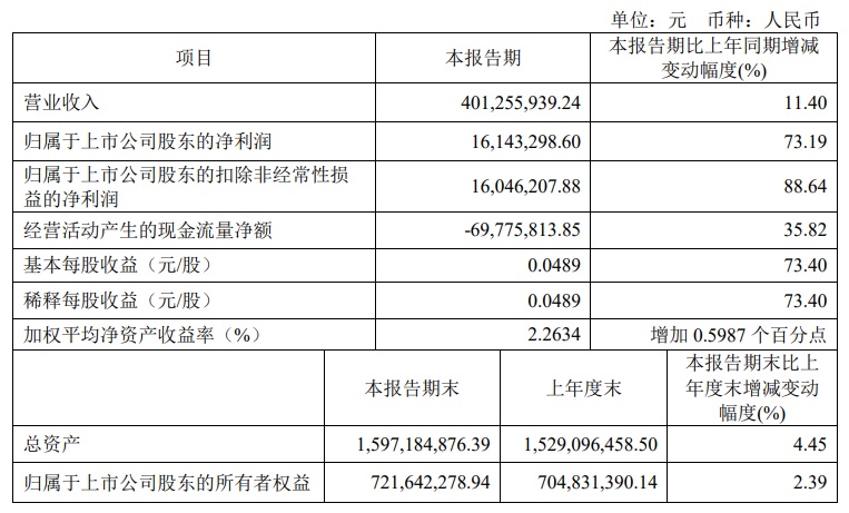 寶光股份2024年一季度主要財務指標